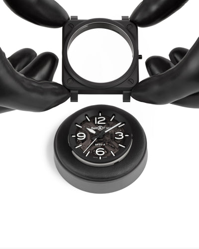 Clearly inspired by the technical and functional purity of aeronautics, the iconic Bell & Ross model, which spearheads the collection in its black ceramic version, has once again been reinvented with skeletonisation.