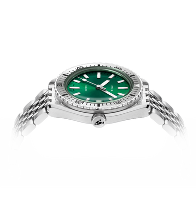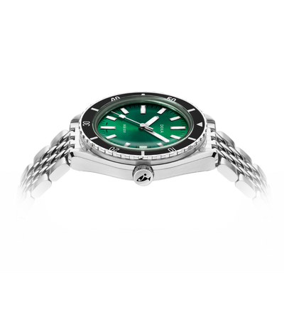Boîtier en acier inoxydable de 42 mm, mouvement automatique, cadran vert.