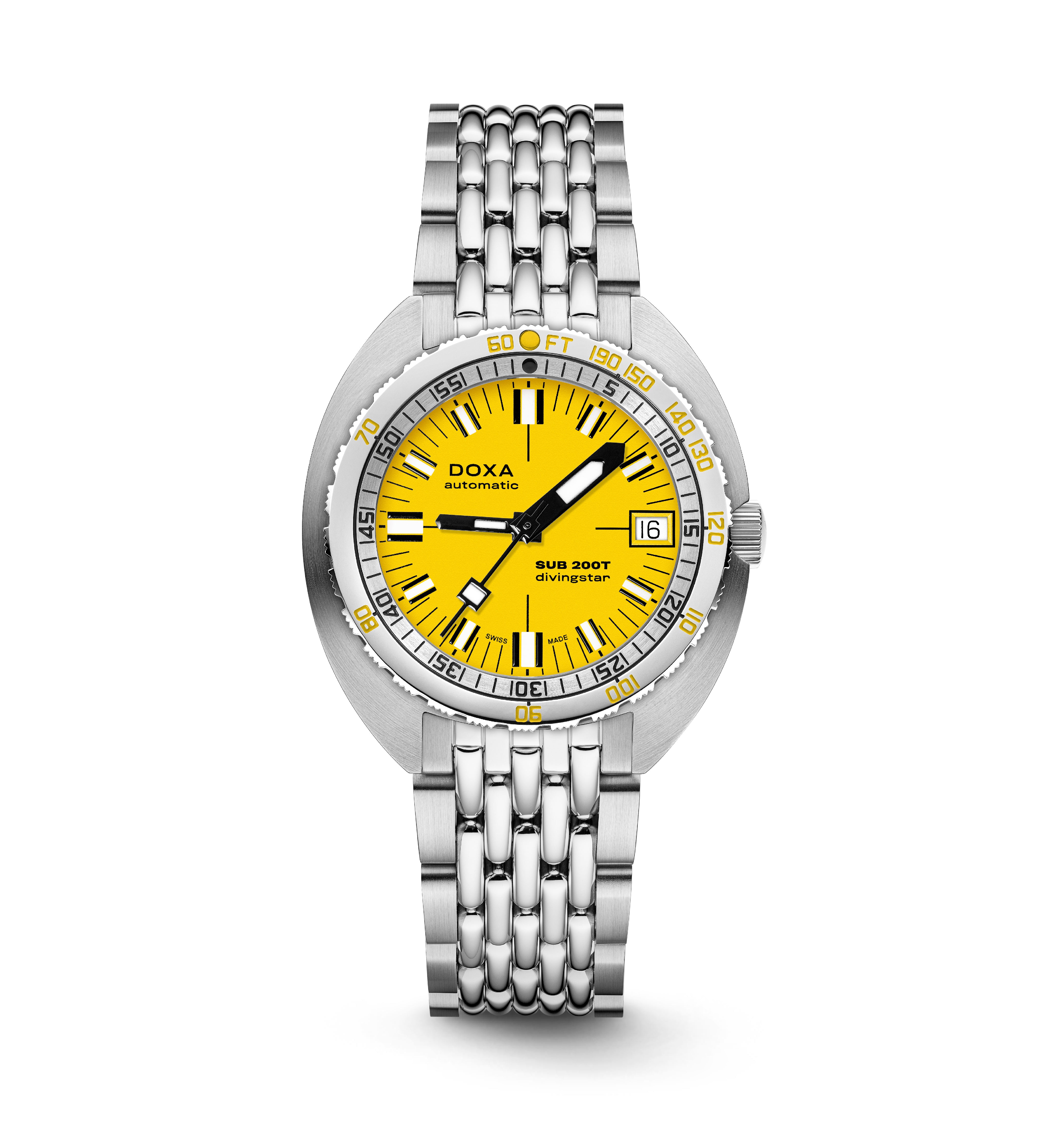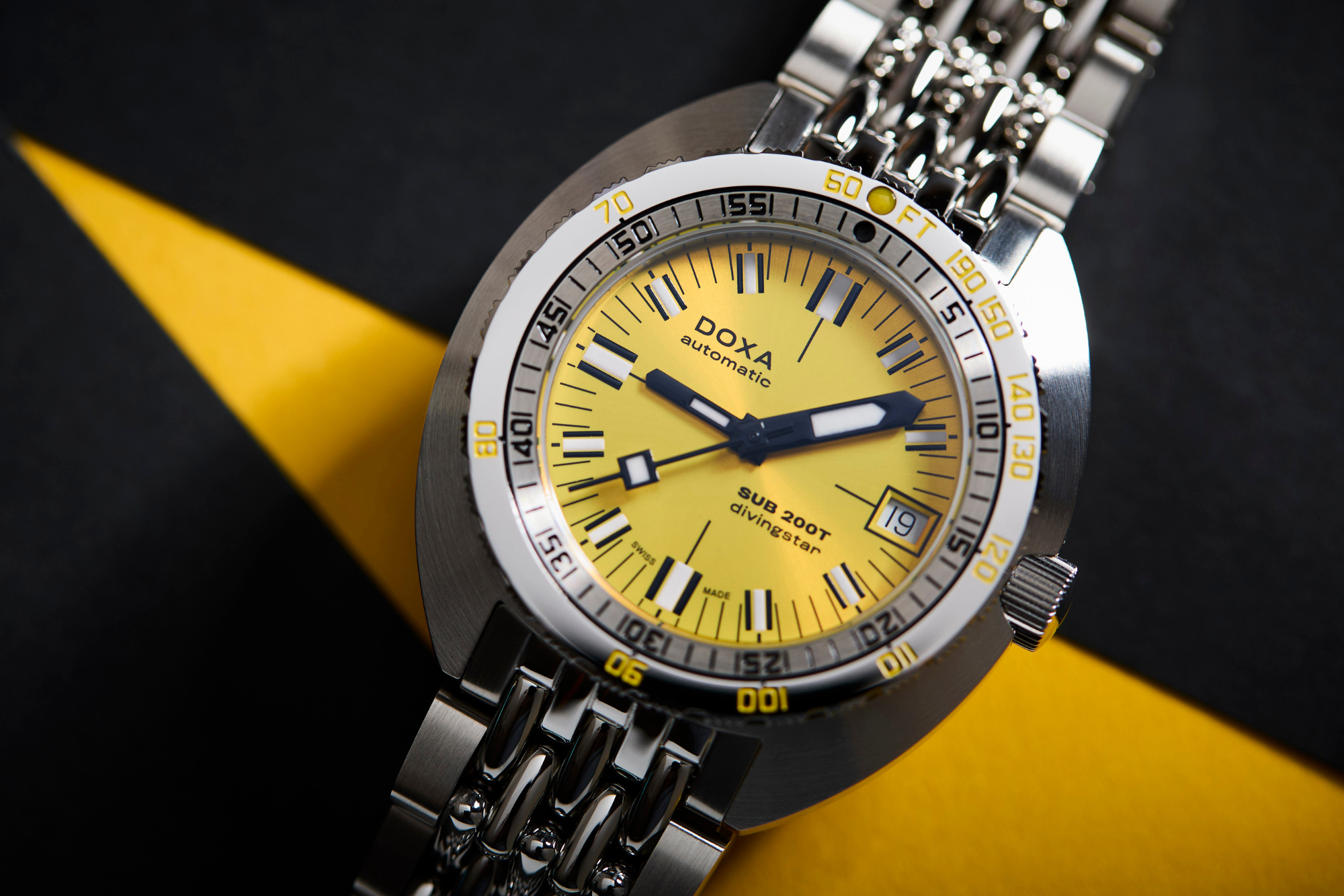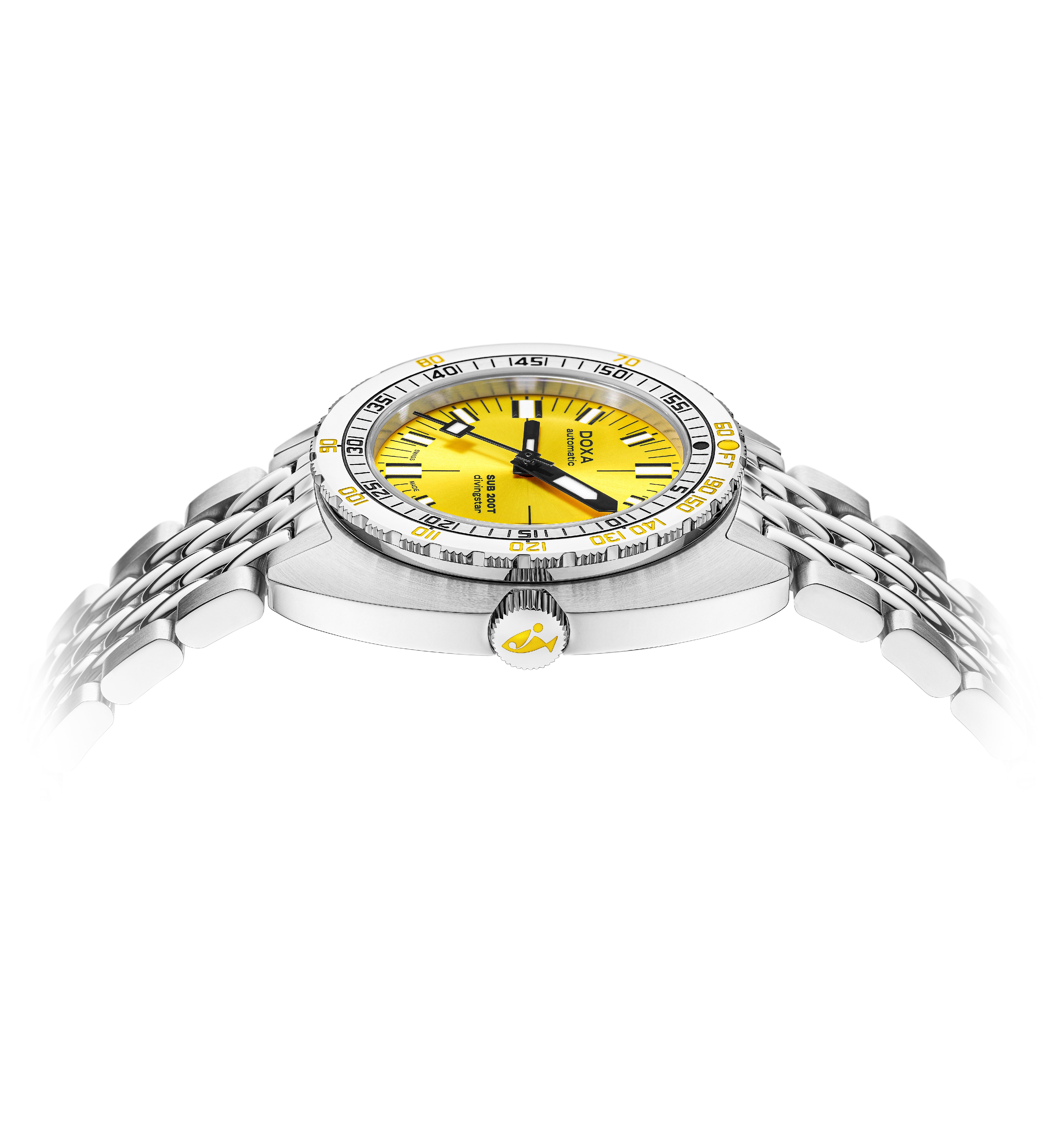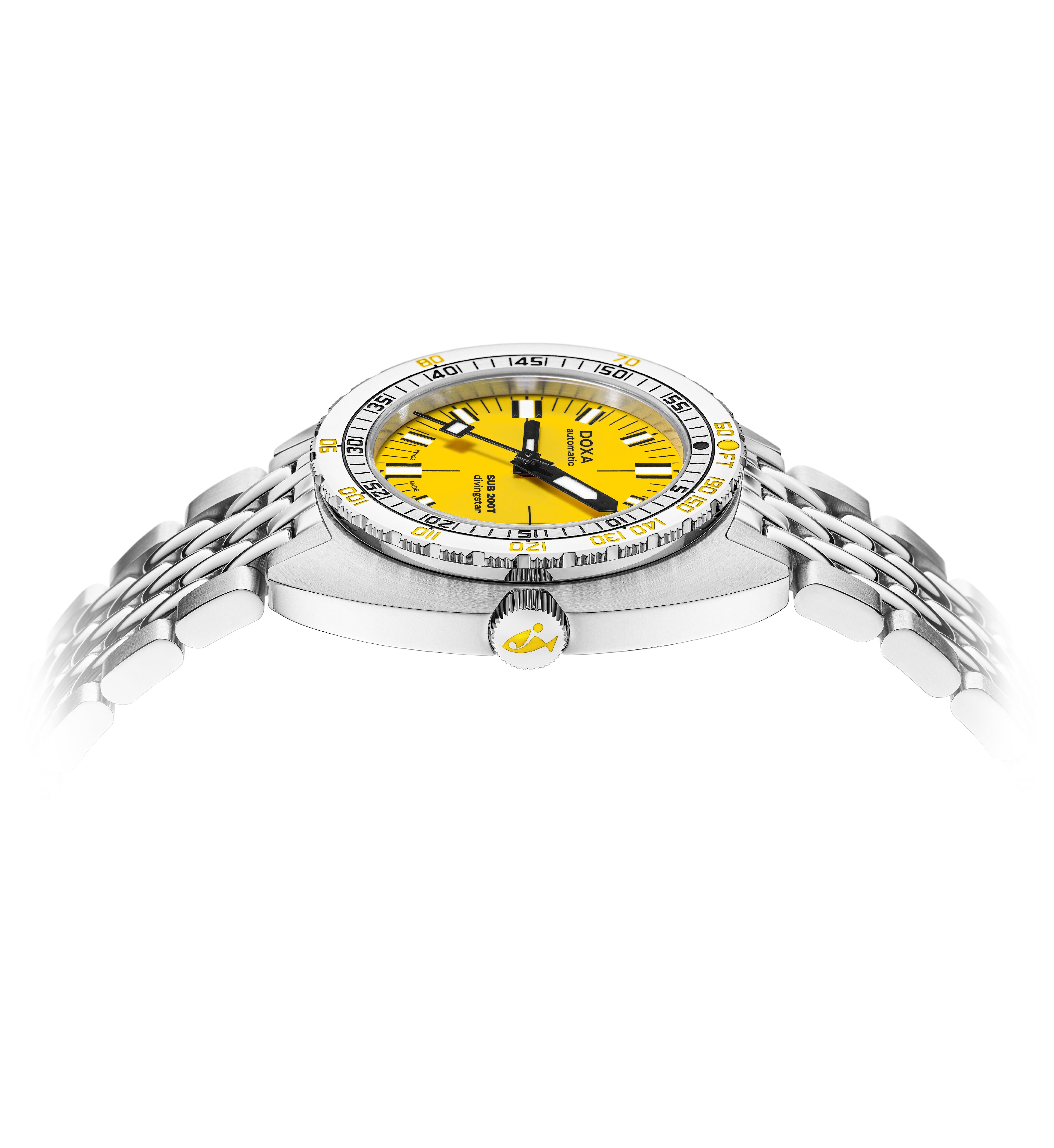 The new SUB 200T skillfully retains all of the original SUB’s DNA while embracing modern style and sophistication with its smaller diameter. In reworking the spatial volumes inside the case to bring it down to an elegant 39 mm diameter and a more wearable thickness of 10.70 mm, DOXA has also tweaked the dial design to achieve a more contemporary visual presence on the wrist.