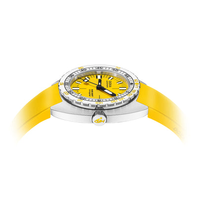 39mm stainless steel case, automatic movement, yellow dial.