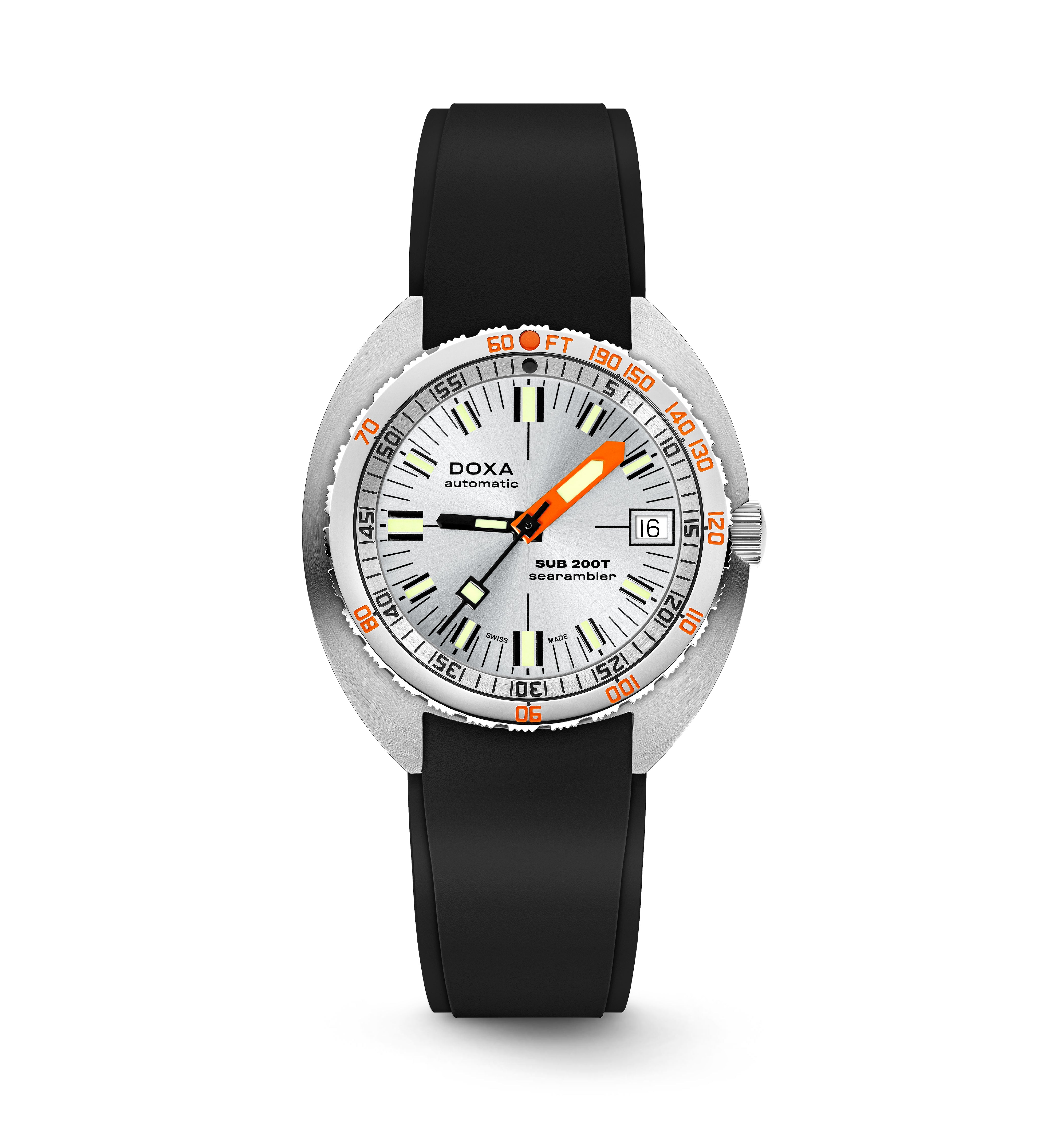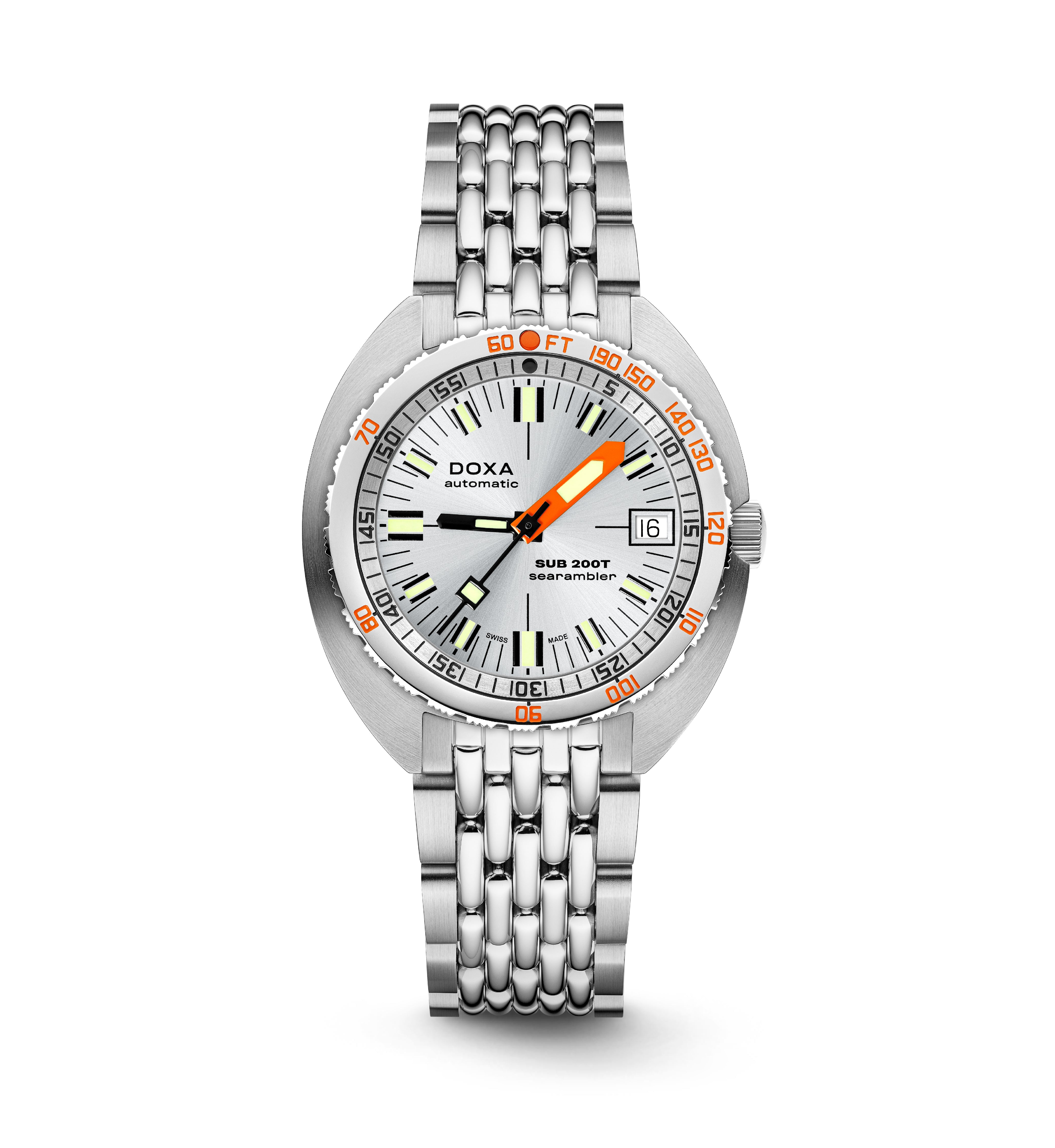 Crafted from premium 316L stainless steel, the SUB 200T is a 3-hand dive watch featuring DOXA’s famous patented unidirectional rotating bezel with its integrated US Navy no-decompression limit table, the benchmark for diver safety.