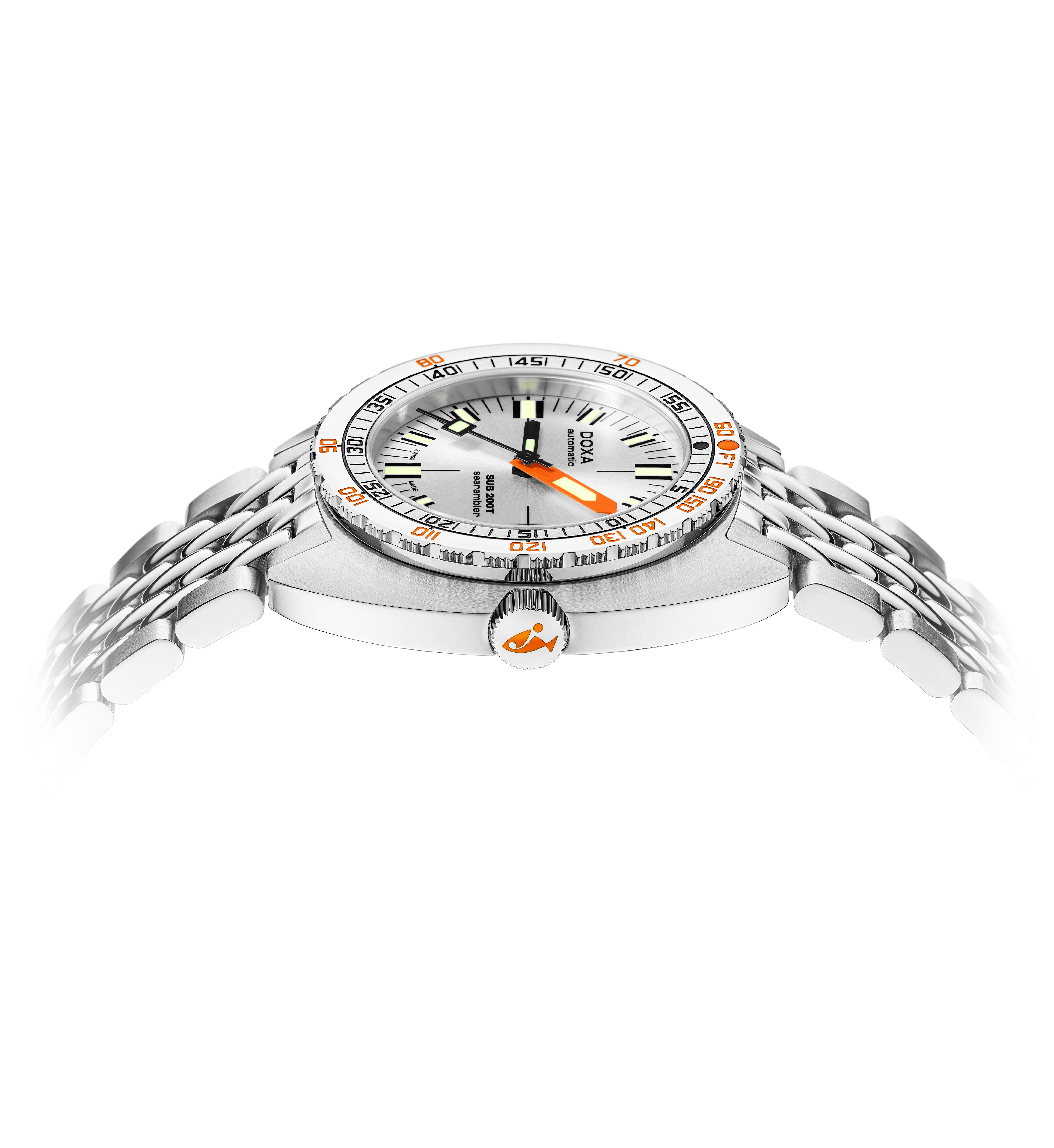 The new SUB 200T skillfully retains all of the original SUB’s DNA while embracing modern style and sophistication with its smaller diameter. In reworking the spatial volumes inside the case to bring it down to an elegant 39 mm diameter and a more wearable thickness of 10.70 mm, DOXA has also tweaked the dial design to achieve a more contemporary visual presence on the wrist.