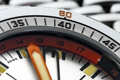 The SUB 250T GMT marks DOXA’s return to the GMT function, blending dive-watch durability with world-time functionality. Its 40mm stainless steel case ensures a perfect balance of wrist presence and comfort, while the screw-down crown and unidirectional bezel with diving scales provide professional-grade performance. With a water resistance of 250 meters (820 feet), it’s built for both underwater exploration and global travel.