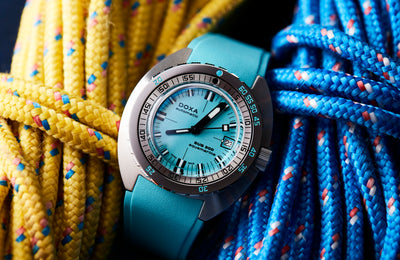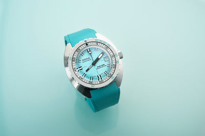 Starting 2020, the SUB 300 will be available in 8 colours. It can be specified either with the iconic ‘beads of rice’ stainless steel bracelet or a sporty rubber strap, with distinctive DOXA cues on both sides, to match the colour of the dial. The folding clasp of the rubber strap features the exclusive DOXA fish symbol and has an adjustable diving extension to accommodate the thickness of a wet-suit. The folding clasp of the beads of rice bracelet is equipped with a wet-suit extension.