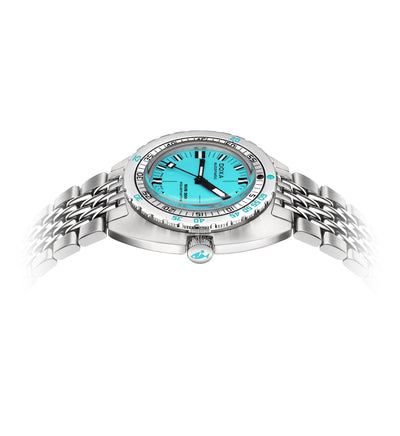 42.5mm stainless steel case, automatic COSC Certified Chronometer movement, aquamarine/turquoise dial.