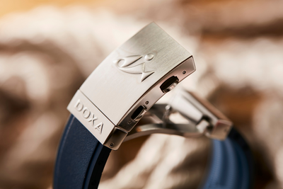 Starting 2020, the SUB 300 will be available in 8 colours. It can be specified either with the iconic ‘beads of rice’ stainless steel bracelet or a sporty rubber strap, with distinctive DOXA cues on both sides, to match the colour of the dial. The folding clasp of the rubber strap features the exclusive DOXA fish symbol and has an adjustable diving extension to accommodate the thickness of a wet-suit. The folding clasp of the beads of rice bracelet is equipped with a wet-suit extension.