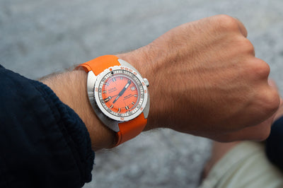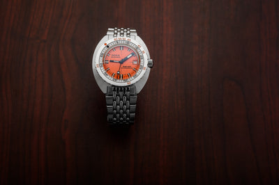 42.5mm stainless steel case, automatic COSC Certified Chronometer movement, orange dial.