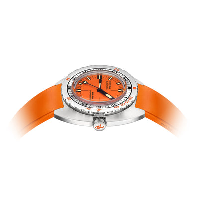 In 1967, DOXA launched the revolutionary SUB concept, considered to be the first truly purpose-designed diver’s watch accessible to a broader public. The radical innovations it introduced at the time soon made it the benchmark for professionals, too. Water-resistant to 30 bar, roughly equivalent to a depth of 300 meters, it was the first to feature a unidirectional bezel with a dual scale for depth and dive time to calculate a safe ascent without decompression stops. Most radical of all: the orange dial which greatly improved readability underwater.