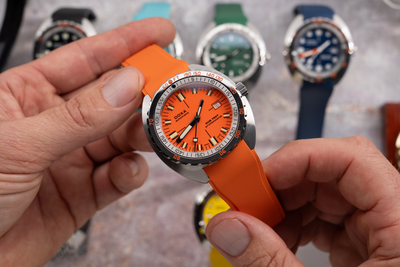 Today, DOXA brings this icon into the present with a completely re-imagined design. The new SUB 750T preserves the DNA of the original with its bold presence, uncompromising build, and rugged reliability while introducing a slimmer and more modern silhouette. The redesigned case remains substantial at 45.00 x 47.00 mm but has been refined to 11.95 mm in thickness, making it lighter, more comfortable, and better suited to contemporary wear.