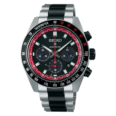 The bracelet enhances the appearance of the watch and is well matched to the case size for an excellent balance. The center of the bracelet is black with a hard coating in an homage to the bonnet of the Datsun 240Z.