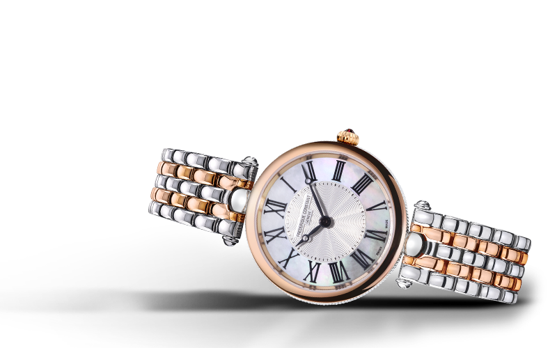 Frédérique Constant Classics Quartz rond Art Déco (cadran MOP blanc / 30mm / Rose bicolore)