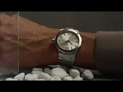 Boîtier en acier inoxydable de 42 mm, mouvement automatique avec fonction date, cadran argenté, bracelet en acier inoxydable.