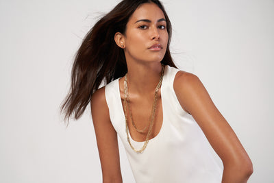 Le collier IT. Ce collier en or massif de 5 mm, fabriqué en or jaune, rose ou blanc 14k, est le parfait collier moderne de tous les jours. Vous pouvez le porter seul ou avec d'autres colliers, ce qui vous donne un aspect superposé. La chaîne a une épaisseur de 5 mm et est disponible en deux longueurs. Le collier se ferme avec un fermoir mousqueton.