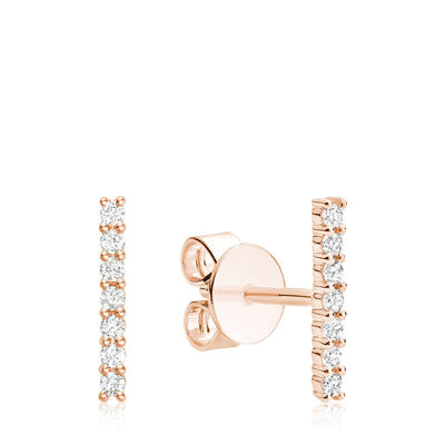 La boucle d'oreille à barre de diamant toujours facile à porter. Cette boucle d'oreille simple mais à la mode est sertie de 14k et de diamants ronds de taille brillante. Les boucles d'oreilles se fixent à l'oreille à l'aide d'un tenon de 14k et d'une fermeture papillon. Les boucles d'oreilles sont serties à la main en 14k, en or blanc, rose ou jaune, avec un poids total approximatif de 0,10 carat. Cette paire de boucles d'oreilles est composée de 14 diamants ronds de taille brillant chacun, sertis à la main.