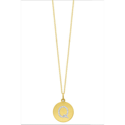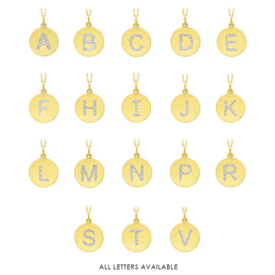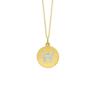 Collier initial de lettres de la collection Hemsleys, 14K, avec un grand disque en diamant