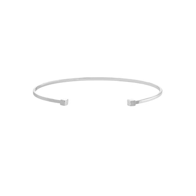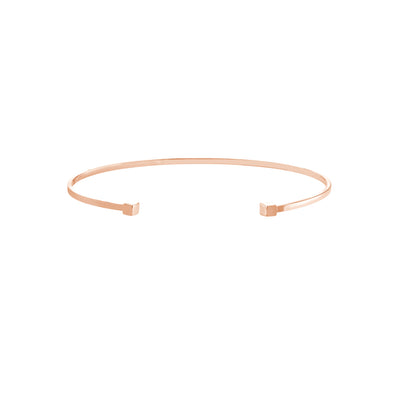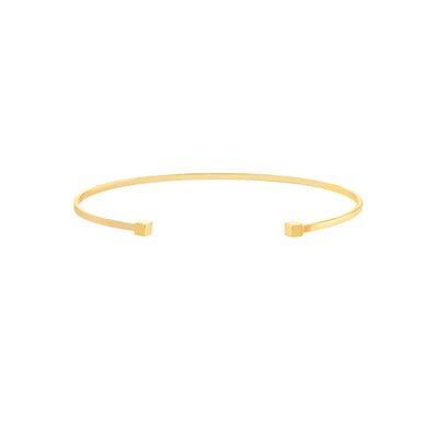 Manchette ouverte empilable en fil de fer rond. Réalisée en or jaune, rose ou blanc 14k, la manchette comporte deux petits cubes de 3 mm à chaque extrémité. Parfait pour offrir à quelqu'un de spécial et pour l'empiler avec d'autres bracelets.