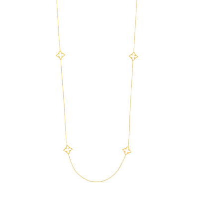 Collier long en or jaune 14K avec trèfle à huit stations, collection Hemsleys