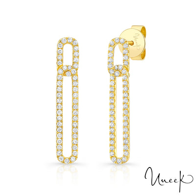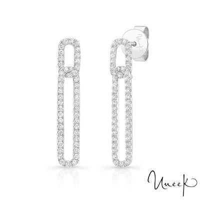 Ces sublimes boucles d'oreilles Uneek en or 18 carats sont parfaites pour votre moitié. Formées avec une quantité affectueuse d'éclat qui éblouit sûrement les observateurs avec ses 94 diamants ronds avec un poids approximatif combiné de 0,49 cT de diamants dans une finition ressemblant à un million. 25mm de longueur et disponible en blanc, rose et jaune.