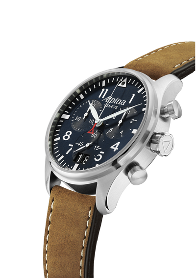 Alpina a développé des montres de pilote depuis les années 1920 pour accompagner les aviateurs et les aider à naviguer à cette époque. La Startimer conserve l'esprit de ces montres, en présentant des cadrans propres et lisibles avec les traditionnelles couronnes surdimensionnées.