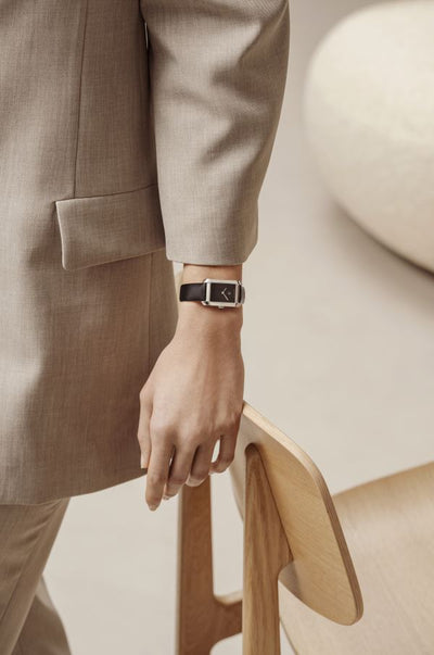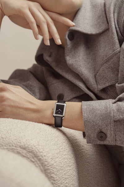 Avec son cadran noir épuré, son boîtier rectangulaire en acier et son bracelet en veau noir, la Hampton 10760 incarne l'élégance pure du noir. Cette nouvelle venue dans la collection Hampton rend hommage à la vision artistique de la Maison, mêlant innovation et rigueur pour redéfinir l'essence de la mesure du temps. Cette Hampton raffinée allie un style intemporel à un mouvement à quartz durable, promettant d'orner les poignets avec élégance pour les années à venir.