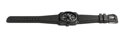 La céramique occupe une place privilégiée dans le secteur aérospatial - et plus particulièrement dans le domaine spatial - pour la fabrication de pièces soumises à des températures élevées, à l'exposition aux acides, à la corrosion et à l'érosion. Bell & Ross a retravaillé la céramique dans ses ateliers suisses pour développer un procédé de fabrication spécial qui met en valeur les qualités intrinsèques de ce matériau remarquable : cette céramique est inrayable, plus légère et sa couleur est inaltérable.