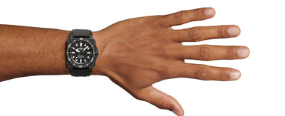 La BR 03 Diver Black Matte Ceramic allie la sophistication technique à une esthétique inspirée des navires furtifs et des équipements d'exploration. En 2024, la BR 03 Diver Black Matte Ceramic fait l'objet d'une mise à jour pour une lisibilité et une puissance accrues. Avec sa lunette et son insert en céramique, ses caractères plus grands et son nouveau bracelet en caoutchouc, elle offre un design distinctif et performant.