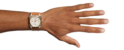 Même dans cette interprétation élégante, la BR 03 conserve fidèlement son statut de montre-instrument. Elle répond aux exigences les plus strictes en matière de fonctionnalité, conformément à l'histoire de Bell & Ross dans le domaine de l'aviation. Les index en applique et les chiffres, dorés à l'or rose, ainsi que les aiguilles squelettées en or rose 18 carats, sont remplis de Super-LumiNova®, garantissant une parfaite lisibilité dans l'obscurité. Le verre saphir traité antireflet assure une visibilité sans faille, à l'image de la verrière qui recouvre le cockpit d'un avion de chasse.