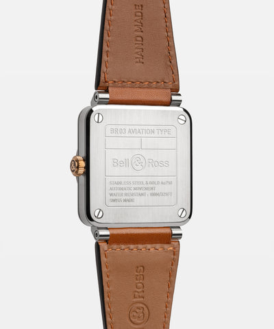 La collection BR 03 incarne l'identité de la marque et symbolise son style grâce à son motif iconique "cercle dans un carré à quatre vis". Fidèle aux codes qui fondent son identité, la nouvelle BR 03 présente un format légèrement plus petit de 41 mm et des détails en or rose 18 carats, ainsi qu'une réserve de marche de 54 heures, assurée par le calibre de dernière génération BR CAL.302-1.