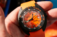42.5mm stainless steel case, automatic COSC Certified Chronometer movement, orange dial.