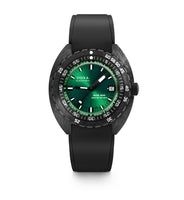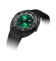 42.5mm stainless steel case, automatic COSC Certified Chronometer movement, green dial, black rubber strap.