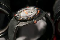 The SUB 300 in carbon remains true to its origins while cultivating an edgier, more technical, but also more urban look and feel. It takes the legend into the future, with a high-performance, putting an advanced lightweight material at the service of function. With a diameter of 42.50 mm, the carbon SUB 300 features a pressure-resistant titanium casing to protect the movement and a screw-down crown. It is rated to 300 meters, equivalent to approximately 980 feet. Precision, robustness, reliability – the SUB 300’s automatic three-hand movement holds the prestigious COSC Certified Chronometer certification guaranteeing all three. It also provides a 38-hour power reserve. The date window is positioned at 3 o'clock. The scratch-resistant sapphire crystal with an anti-reflective treatment is domed: a tribute to its heritage and the curved plexiglass of the very first SUB 300. All dive-related markings have a Super-LumiNova® luminescent coating to ensure optimum legibility even in low-visibility conditions.