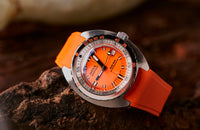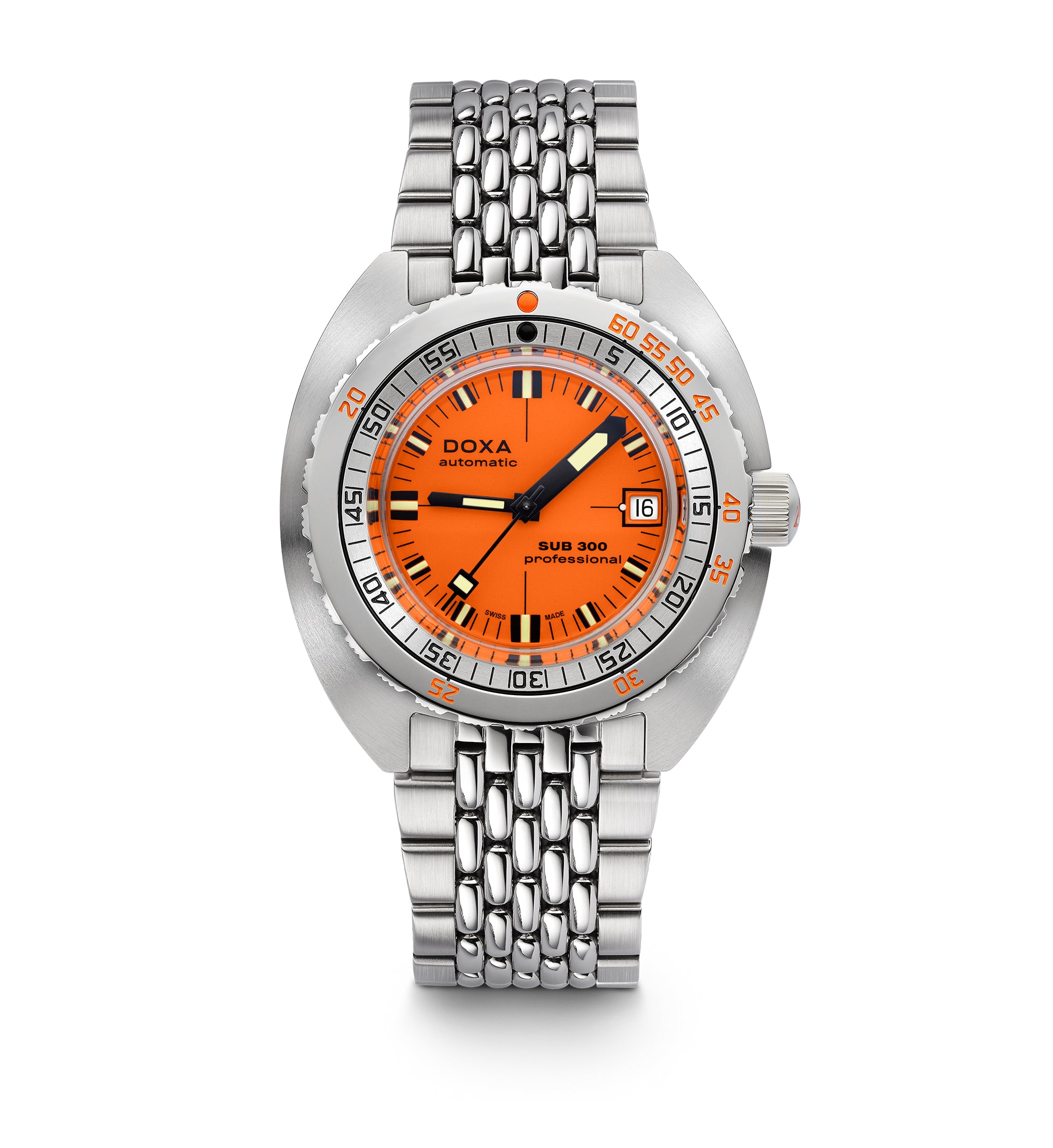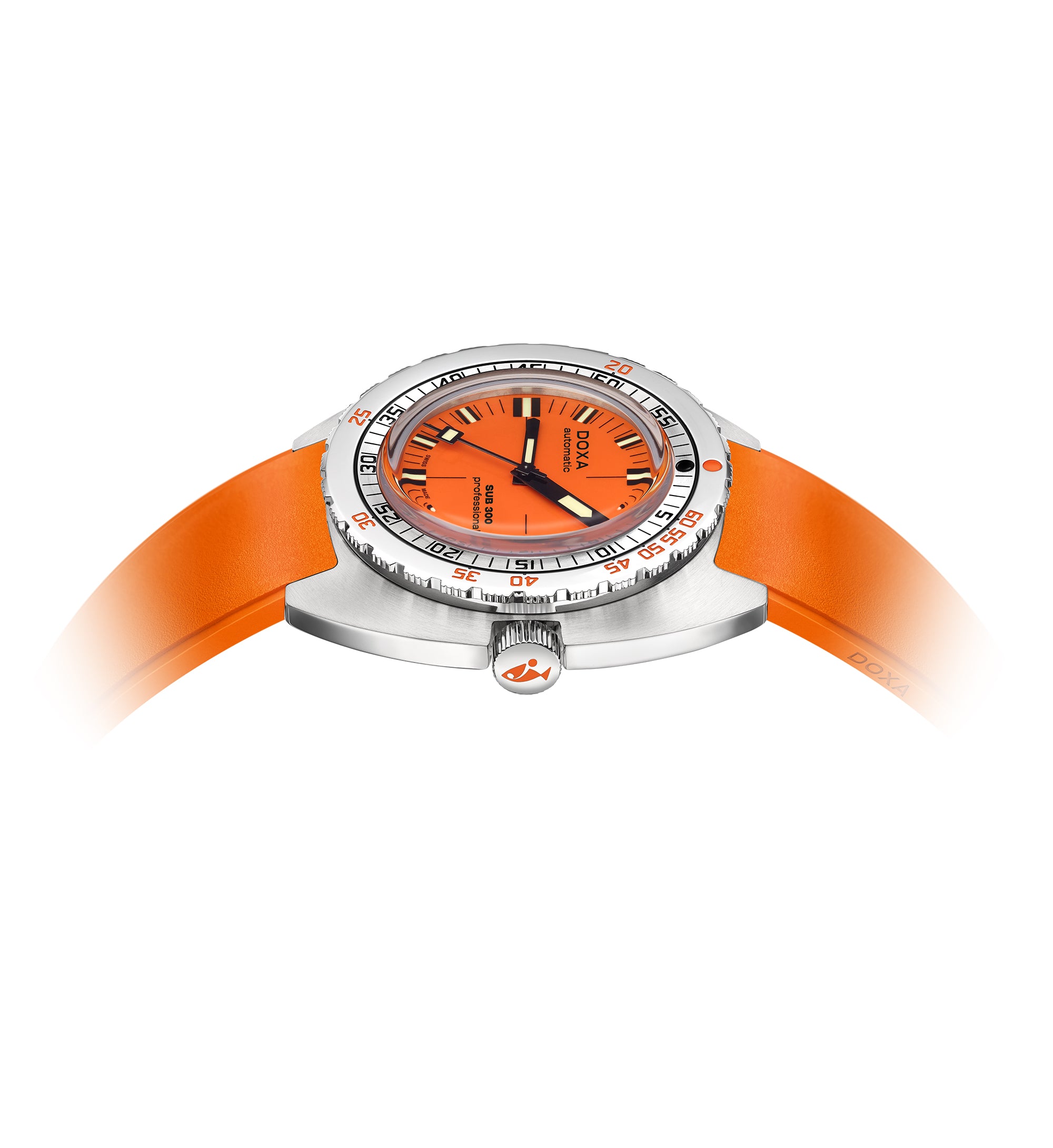 In 1967, DOXA launched the revolutionary SUB concept, considered to be the first truly purpose-designed diver’s watch accessible to a broader public. The radical innovations it introduced at the time soon made it the benchmark for professionals, too. Water-resistant to 30 bar, roughly equivalent to a depth of 300 meters, it was the first to feature a unidirectional bezel with a dual scale for depth and dive time to calculate a safe ascent without decompression stops. Most radical of all: the orange dial which greatly improved readability underwater.