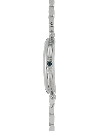 Chef-d'œuvre portable, l'Art déco classique évoque le style opulent qui a balayé les milieux européens à la mode dans les années 1920. Ce garde-temps d'inspiration vintage présente un cadran décoré de nacre et de guillochis et des chiffres romains imprimés en noir. Cette montre est dotée d'un bracelet en acier inoxydable brillant.