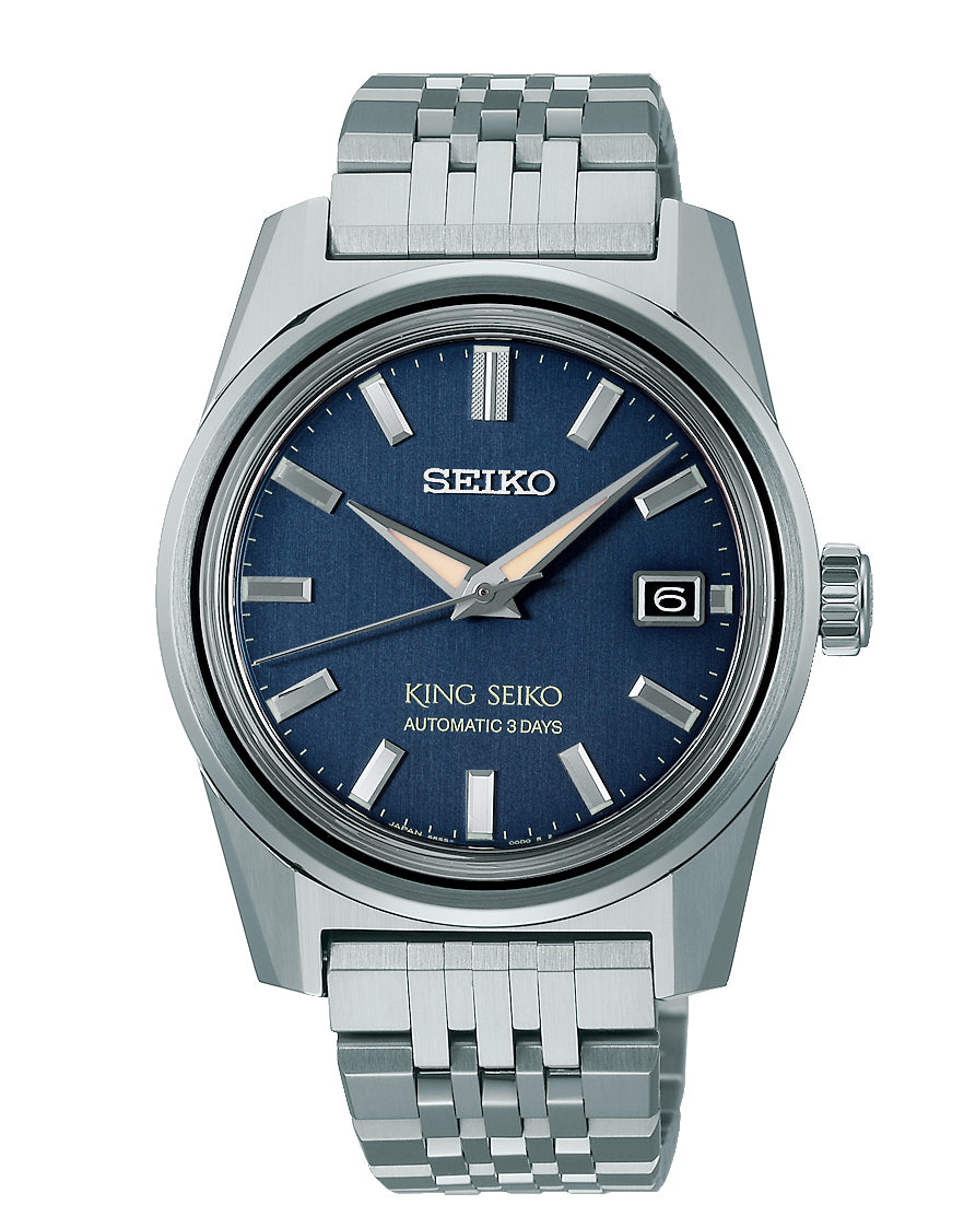 In 1965, four years after the birth of the first King Seiko, a series known as the King Seiko KSK was created. It was this design that forever defined the character of the collection, with its sharp, angular case and high functionality. Featuring a combination of a beautifully-finished dial with faceted indexes and broad, razor-edged hands, modern re-interpretations of the KSK offer a refined and striking presence. The twelve o’clock index is more than twice the width of the others and has a patterned texture specially crafted to ensure high legibility and to give the dial a bright sparkle that invites the eye. The bold, uniquely shaped lugs have sharp angles and wide flat surfaces that showcase both mirror and hairline finishing, creating a sense of precision. An artful melding of proportions, design, and functionality results in watches capable of moving gracefully from relaxed to formal situations and everywhere in between.