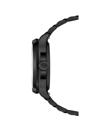 40mm black PVD stainless steel case, automatic movement with 80 hour power reserve, grey dial with orange accents, black PVD stainless steel bracelet.