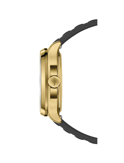 40mm yellow PVD stainless steel case, automatic movement with 80 hour power reserve, yellow & black dial, yellow PVD stainless steel bracelet plus an additional black rubber strap.