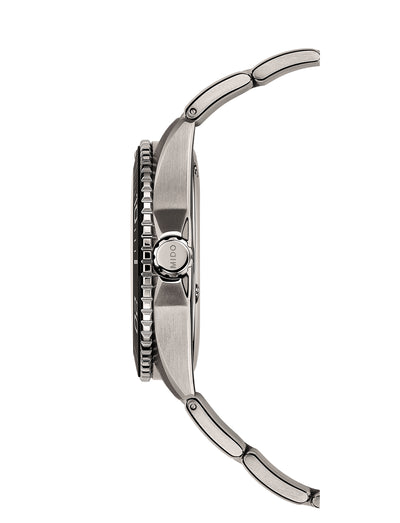 42.5mm titanium case, automatic movement with 80 hour power reserve, black wave dial, titanium bracelet