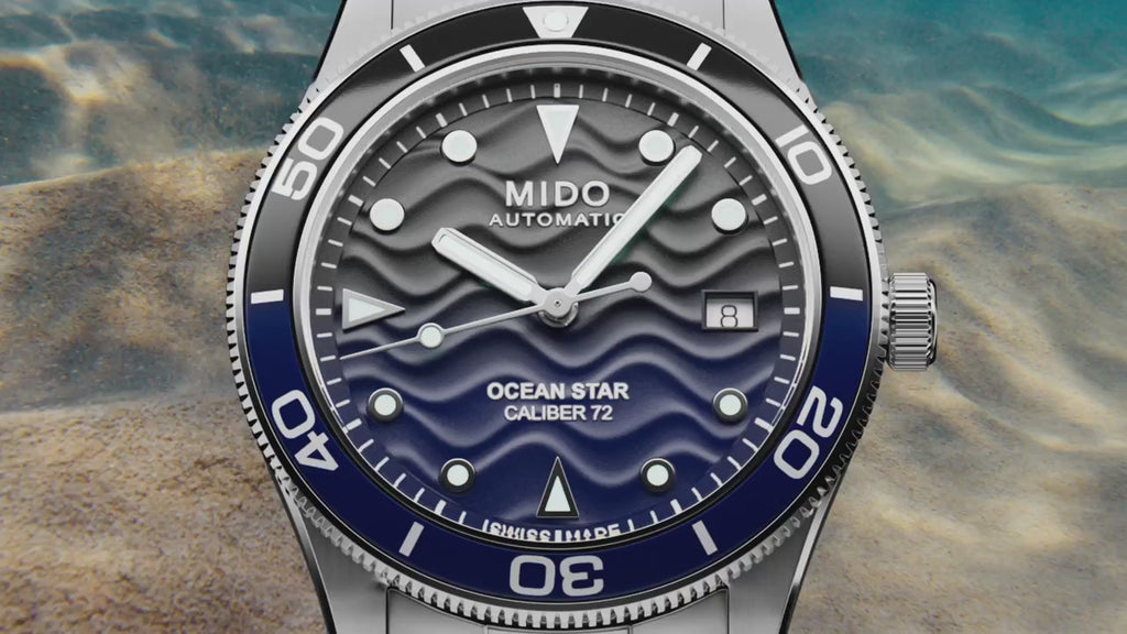 Get set for an adventure – on land or across the ocean, but always in great style! MIDO proposes what is undeniably its most versatile Ocean Star watch model, a sporty, reliable and chic companion for any escape. Its perfect 39 mm diameter, is combined with a beautifully slim case for the Ocean Star. The aesthetic of this automatic watch is defined as well by its unique and distinctive relief dial – evoking the movement of the currents across the sand. Water-resistant up to a pressure of 200 m (20 bars / 660 ft), the famous starfish motif - emblem of MIDO's historic watchmaking expertise in water-resistance - is featured on its screw-down case back.