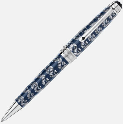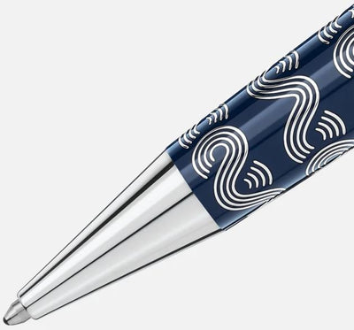 Le stylo à billeest doté d'un corps et d'un capuchon en résine précieuse d'un bleu profond qui présente un motif fraisé des éléments clés du roman : les vagues de l'océan, les couleurs des cartes et un cartouche avec un bateau à vapeur gravé au laser et une agrafe avec le symbole de l'as de pique en laque noire.Le stylo a desdimensions de 144,7 mm x 14,1 mmet pèse environ 47,05 kg.et pèse environ 47,05 grammes.