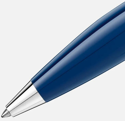 Le stylo à bille a un clip recouvert de platine avec la marque Montblanc en relief et le numéro de série individuel . Le corps du stylo est en résine précieuse bleue et a des dimensions de 134,5x13,1x13,1 mm et pèse environ 31,67 grammes.
