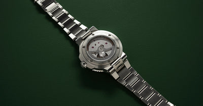 Boîtier en acier inoxydable de 41,5 mm, mouvement automatique maison Calibre 400 avec fonction date, cadran vert.