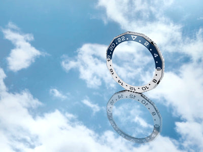 L'insert de la lunette en céramique bicolore bleue et blanche sert d'indicateur jour/nuit pour le second fuseau horaire et est à la fois robuste et audacieux. Le boîtier raffiné en acier de 43 mm est parfait pour les aventures tout-terrain, et le cadran brossé bleu soleil est conçu dans un souci de performance. Le garde-temps est doté d'une aiguille GMT orange qui effectue une rotation complète par jour, suivant l'échelle de 24 heures visible sur la lunette GMT bidirectionnelle, vous permettant ainsi de lire un second fuseau horaire sur votre poignet. La lunette se décline en deux couleurs pour distinguer le jour de la nuit : une moitié en bleu nuit profond pour s'harmoniser avec le cadran et représenter les heures de la nuit, de 6 heures du soir à 6 heures du matin, et une moitié en blanc brillant pour représenter les heures du jour, de 6 heures du matin à 6 heures du soir.