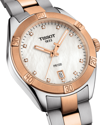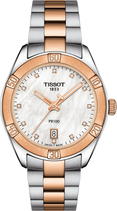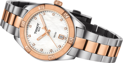 Tissot PR 100 Sport Chic Quartz (cadran blanc MOP Diamond / 36mm / bicolore or rose)