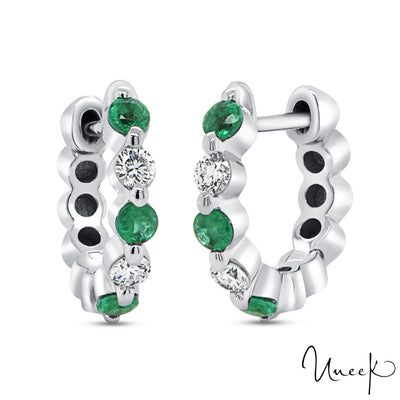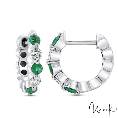 Uneek 14KW Green Emerald & Diamond Small Huggy Earrings (boucles d'oreilles serrées en forme d'émeraude verte et de diamant)